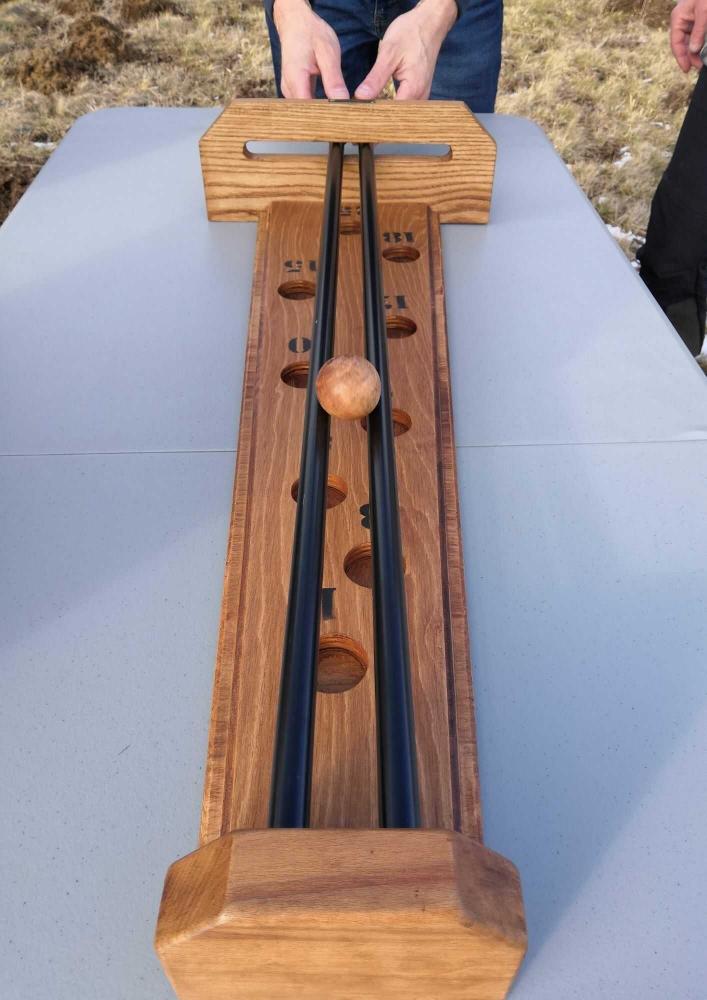 This traditional wooden game will put your skill to the test, as it's up to you to make the ball fall in the highest score.